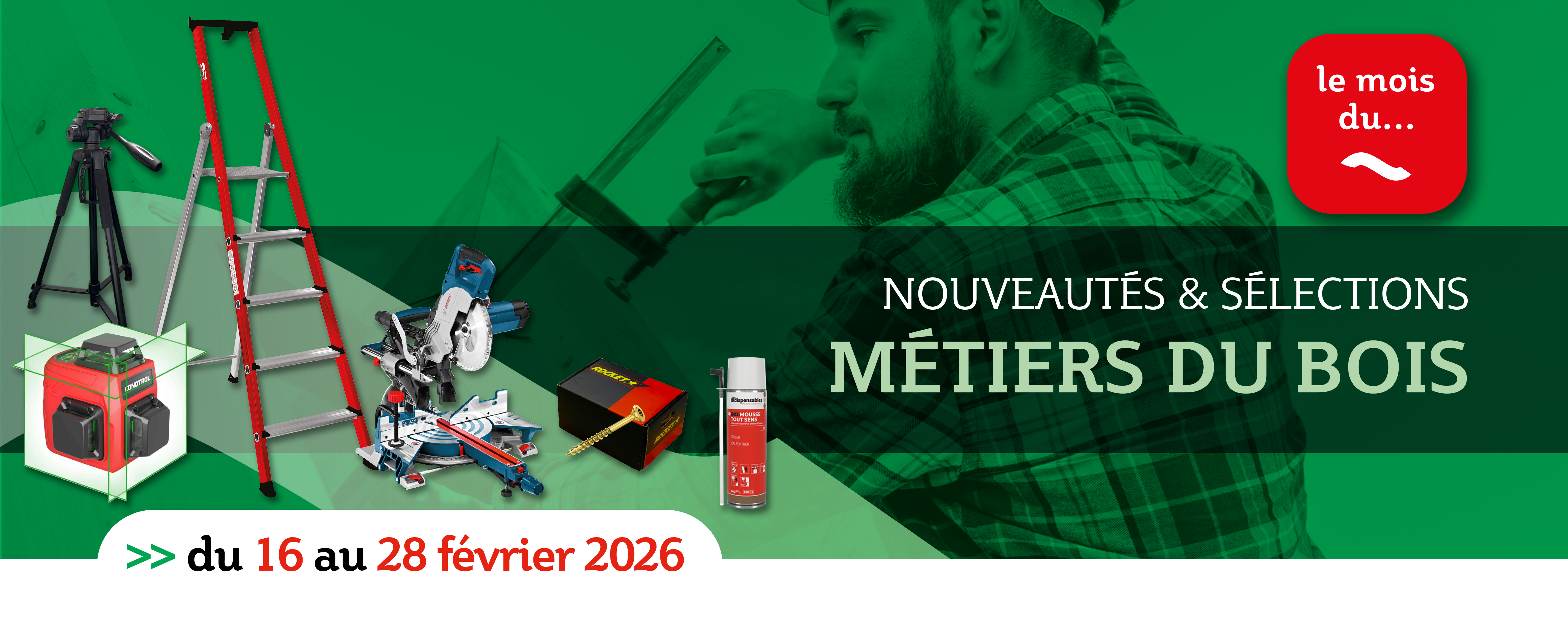 Du 16 au 28 février 2026, retrouvez toutes nos solutions pour vos chantiers bois.