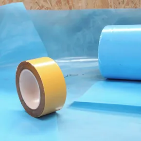 L’adhésif double face pour film permet d’assembler des films plastiques du bâtiment aux murs, aux points singuliers, et entre lés de films.