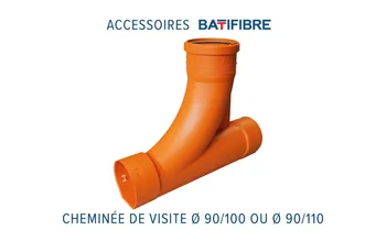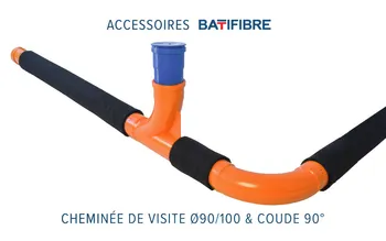 Cheminée de visite Ø 90 sortie Ø 100 BATIFIBRE certifié SN4, pour contrôle ou curage des drains de fondation BATIDRAIN ou BATIFIBRE avec sortie évacuation PVC Ø 100 - Sous Avis Technique n°17.2/16-317 et certifié QB -68-01-317